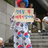 Weiter gings zum Gwanghwamun, wo eine Gruppe von Uni-Studenten das Volk aufklaerte wie man eine Flagge richtig einsetzt, was sie ueberhaupt symbolisiert und warum Japaner in schwarzen Anzuegen unschuldige Koreaner verpruegeln. Aber das nur am Rande.