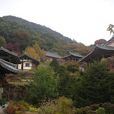 Songni, das heisst "sich trennen vom Weltlichen" und genau das, war das, was ich fuehlte als ich ueber die Bruecke zum Tempelbezirk ging. Die leuchtenden Herbstfarben und die nebelverhangenen Berge, dann ploetzlich der riesige Goldbuddha. Ich fuehlte mich wie in einem fernen buddhistischen Paradies.